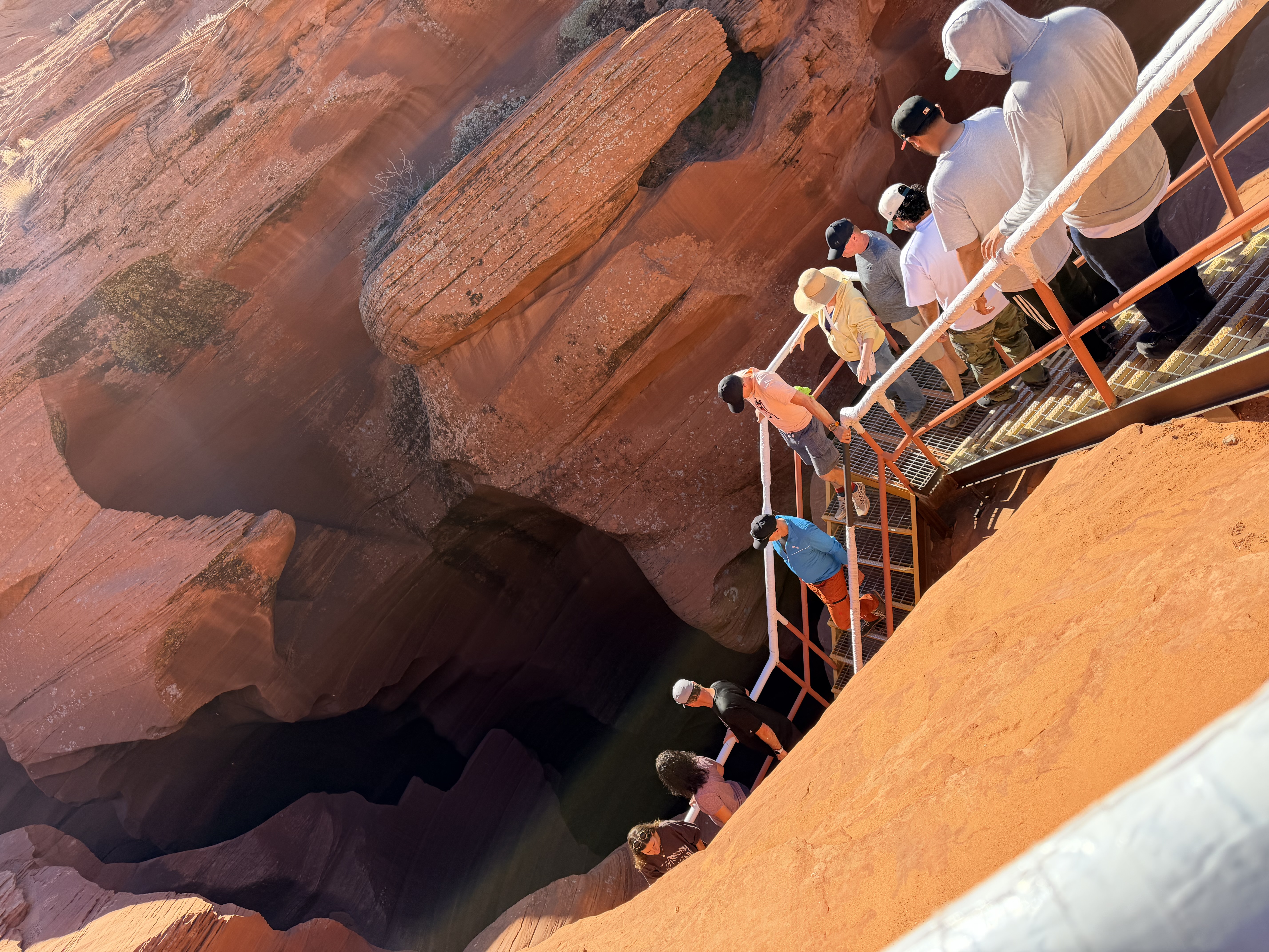 Mas o que realmente se destacou foi o esforço que nossa guia dedicou para garantir que todos do grupo tirassem fotos incríveis. Os corredores estreitos do Lower Antelope Canyon e a forma como a luz incide nas paredes de arenito podem ser difíceis de capturar, e nossa guia indicou com maestria os melhores ângulos, condições de iluminação e pontos para a foto perfeita. Não parando por aí, ela circulou pessoalmente tirando fotos maravilhosas de cada pessoa do grupo — todos voltaram para casa com lembranças deslumbrantes que poderiam realmente guardar.